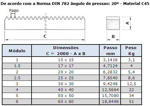 Cremalheira Modulo 1 - 15x15x2000mm em Aço 1045